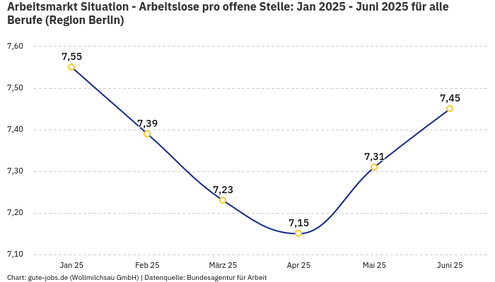 Arbeitsmarkt Situation - Arbeitslose pro offene Stelle: Juni 2025 - Nov 2025 | Für alle Berufe | Bundesland Berlin