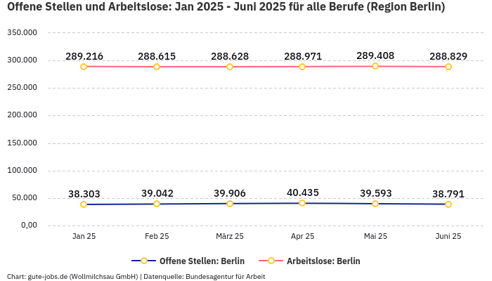 Offene Stellen und Arbeitslose: Juni 2025 - Nov 2025 | Für alle Berufe | Region Berlin