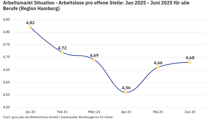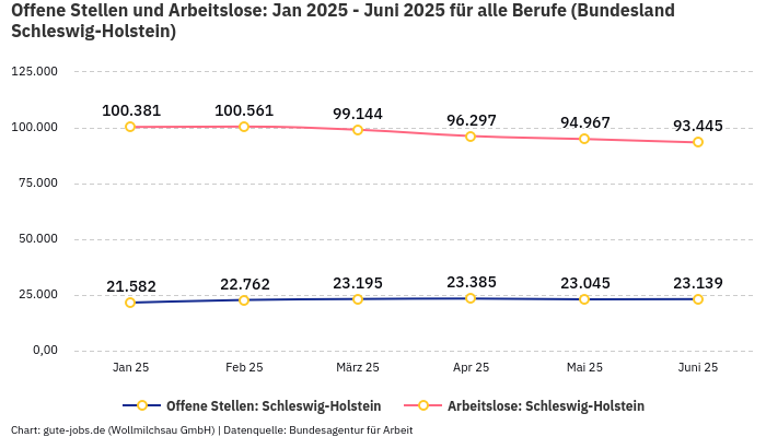 Je nach Beruf kann die Nachfrage nach Fachkräften stark variieren. Dennoch können übergreifende Zahlen für das ganze Bundesland Schleswig-Holstein bzw. für die präzisere Arbeitsmarkteinheit, die Arbeitsmarktregion Hamburg, einen ersten Eindruck vermitteln.