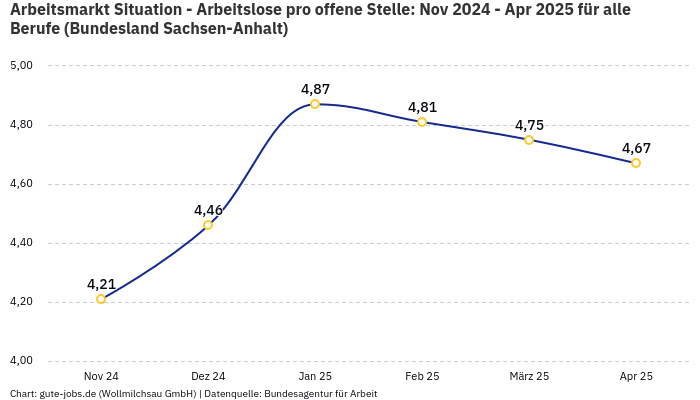 Arbeitsmarkt Situation - Arbeitslose pro offene Stelle: Juni 2025 - Nov 2025 | Für alle Berufe | Bundesland Sachsen-Anhalt