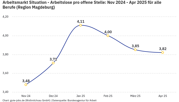 Arbeitsmarkt Situation - Arbeitslose pro offene Stelle: Juni 2025 - Nov 2025 | Für alle Berufe | Region Magdeburg