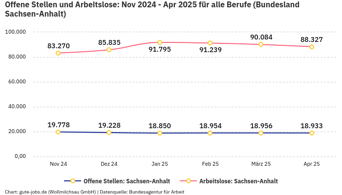 Offene Stellen und Arbeitslose: Juni 2025 - Nov 2025 | Für alle Berufe | Bundesland Sachsen-Anhalt