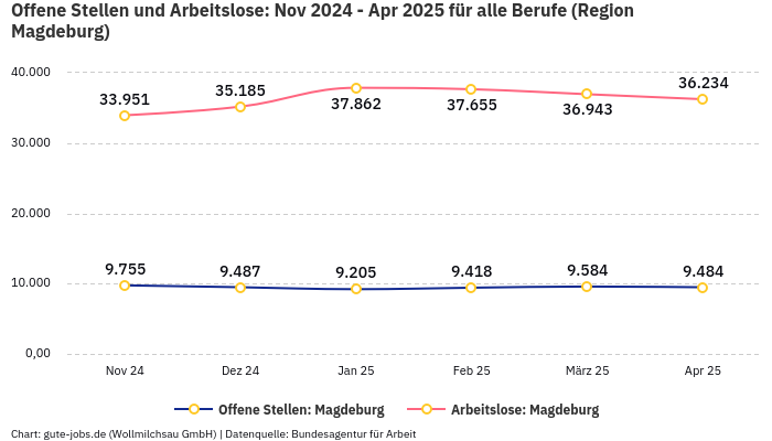 Offene Stellen und Arbeitslose: Juni 2025 - Nov 2025 | Für alle Berufe | Region Magdeburg