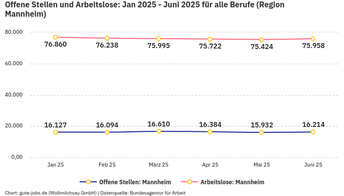 Du suchst nach passenden Stellenangeboten in Mannheim? Mannheim liegt im Bundesland Baden-Württemberg und dort in der von der Bundesagentur für Arbeit definierten Arbeitsmarktregion Mannheim. In Baden-Württemberg arbeiten 2025 insgesamt 3.170.434 Personen, was 14,58% aller Beschäftigten Personen in Deutschland entspricht.