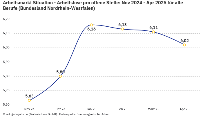 Arbeitsmarkt Situation - Arbeitslose pro offene Stelle: Juni 2025 - Nov 2025 | Für alle Berufe | Bundesland Nordrhein-Westfalen
