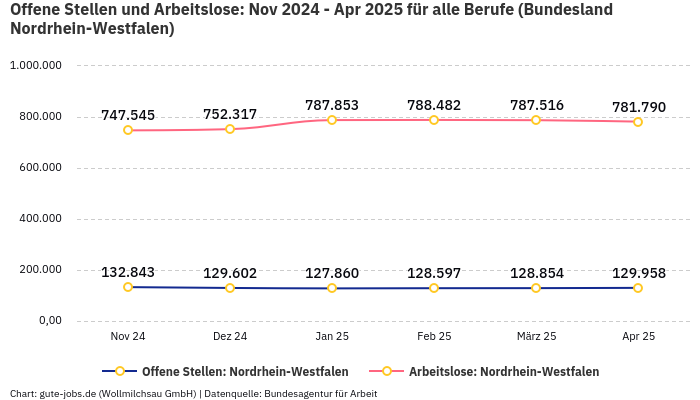 Offene Stellen und Arbeitslose: Juni 2025 - Nov 2025 | Für alle Berufe | Bundesland Nordrhein-Westfalen