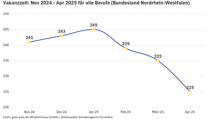 Folgende Grafik zeigt dir die Entwicklung der Vakanzzeit der letzten 6 Monate in Nordrhein-Westfalen: