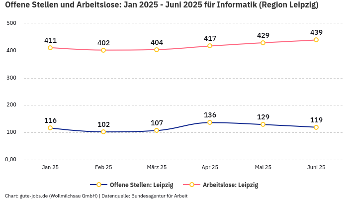 Offene Stellen und Arbeitslose: Juni 2025 - Nov 2025 | Für Informatik | Region Leipzig