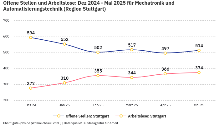Offene Stellen und Arbeitslose: Juni 2025 - Nov 2025 | Für Mechatronik und Automatisierungstechnik | Region Stuttgart