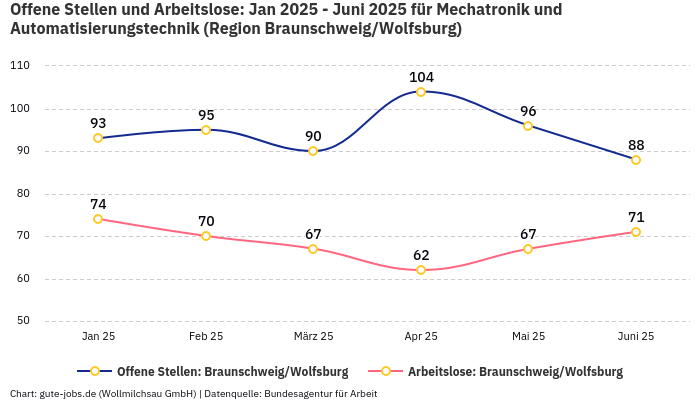 Offene Stellen und Arbeitslose: Juni 2025 - Nov 2025 | Für Mechatronik und Automatisierungstechnik | Region Braunschweig/Wolfsburg