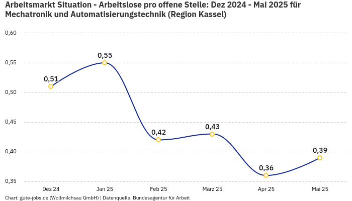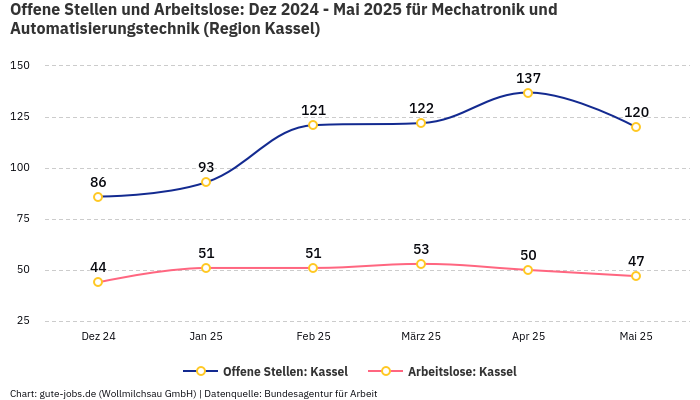 Auf der Bundeslandebene hat Hessen im November ca. 5.669 beschäftigte und 343 als arbeitslos gemeldete Personen in der Berufsuntergruppe “Mechatronik und Automatisierungstechnik”. Daraus lässt sich die “berufsspezifische” Beschäftigungsquote von ca. 94,29% errechnen.
