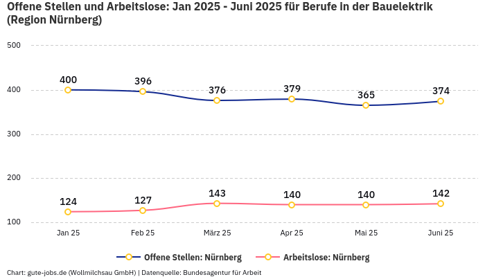 Zu erkennen ist allerdings, dass sich in Nürnberg das Verhältnis von offenen Stellenangeboten und Arbeitslosen in den letzten 6 Monaten um -26,32% verändert hat. Deine Chancen auf eine Anstellung sind somit besser als noch vor einem halben Jahr.