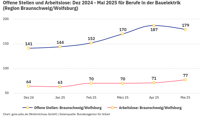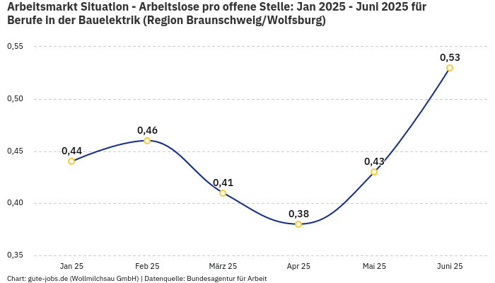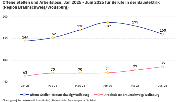 Offene Stellen und Arbeitslose: Juni 2025 - Nov 2025 | Für Berufe in der Bauelektrik | Region Braunschweig/Wolfsburg