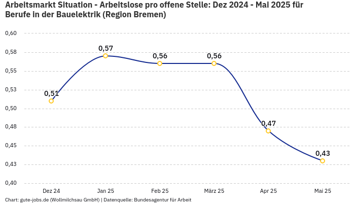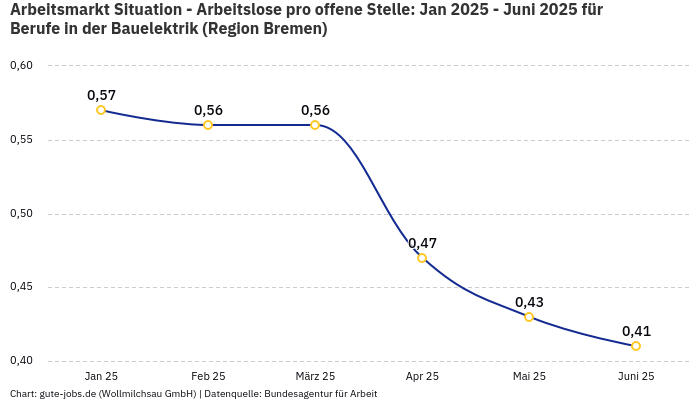 Arbeitsmarkt Situation - Arbeitslose pro offene Stelle: Juni 2025 - Nov 2025 | Für Berufe in der Bauelektrik | Region Bremen