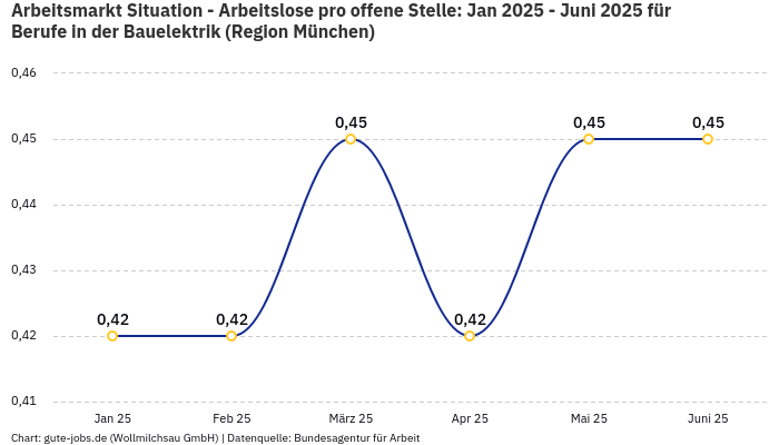Arbeitsmarkt Situation - Arbeitslose pro offene Stelle: Juni 2025 - Nov 2025 | Für Berufe in der Bauelektrik | Region München