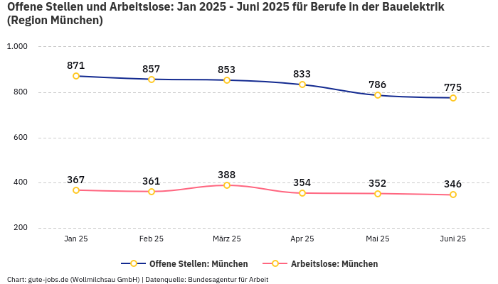Offene Stellen und Arbeitslose: Juni 2025 - Nov 2025 | Für Berufe in der Bauelektrik | Region München