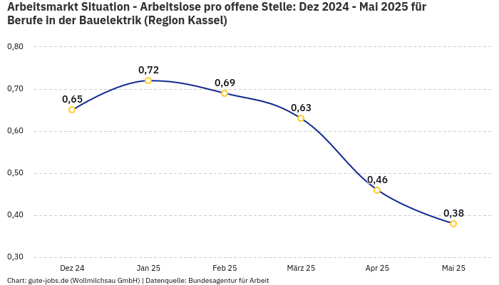 Arbeitsmarkt Situation - Arbeitslose pro offene Stelle: Juni 2025 - Nov 2025 | Für Berufe in der Bauelektrik | Region Kassel