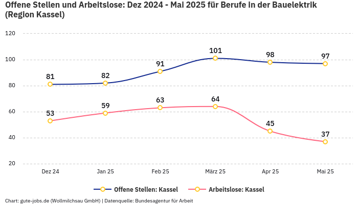 Offene Stellen und Arbeitslose: Juni 2025 - Nov 2025 | Für Berufe in der Bauelektrik | Region Kassel