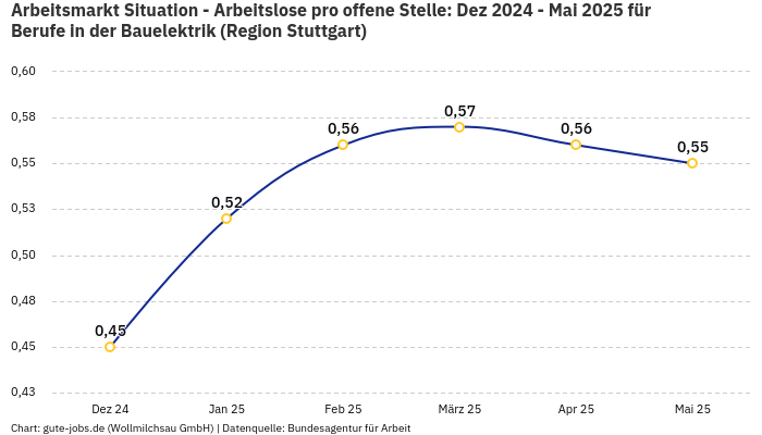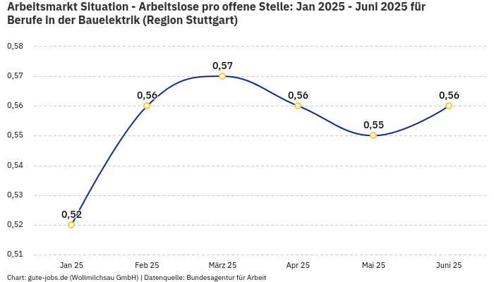 Arbeitsmarkt Situation - Arbeitslose pro offene Stelle: Juni 2025 - Nov 2025 | Für Berufe in der Bauelektrik | Region Stuttgart
