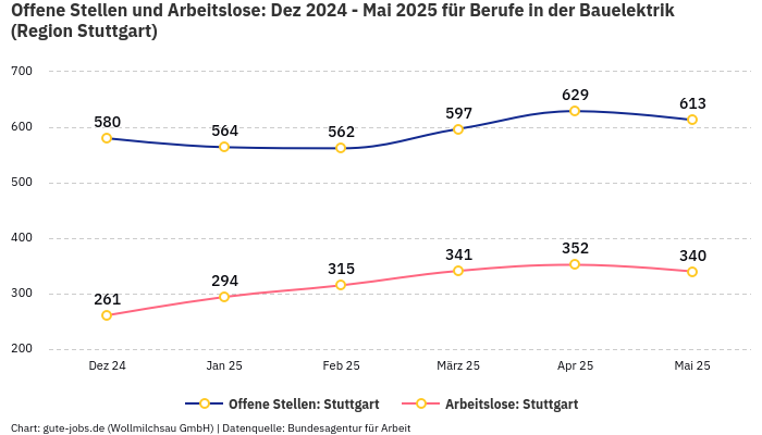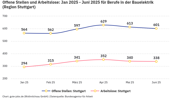 Offene Stellen und Arbeitslose: Juni 2025 - Nov 2025 | Für Berufe in der Bauelektrik | Region Stuttgart