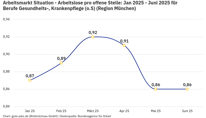 Für den Beruf Gesundheits Und Krankenpfleger findest Du in unserer Jobbörse momentan 22 offene Stellen. Aktuell liegt in der Arbeitsmarktregion München die Vakanzzeit bei 270 Tagen. Dies entspricht dem Zeitraum zwischen der Publikation des Jobangebots bei der Jobbörse der Agentur für Arbeit und seiner Entfernung aus eben dieser.