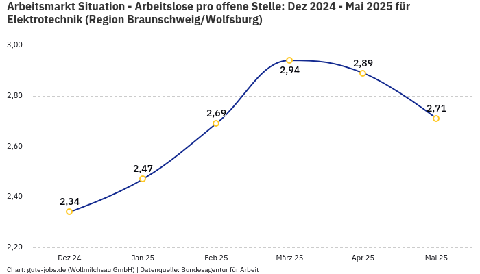 Du willst wissen, wie aussichtsreich Deine Suche als Ingenieur Elektrotechnik in Gifhorn ist? Laut Statistik „konkurrieren“ in der Berufsgruppe “Elektrotechnik” im Monat 416 registrierte Arbeitslose bei der Bundesagentur für Arbeit um 136 offene Stellen. So kommen in der Arbeitsmarktregion Braunschweig/Wolfsburg im Monat November 3,06 Arbeitslose auf eine offene Stelle.