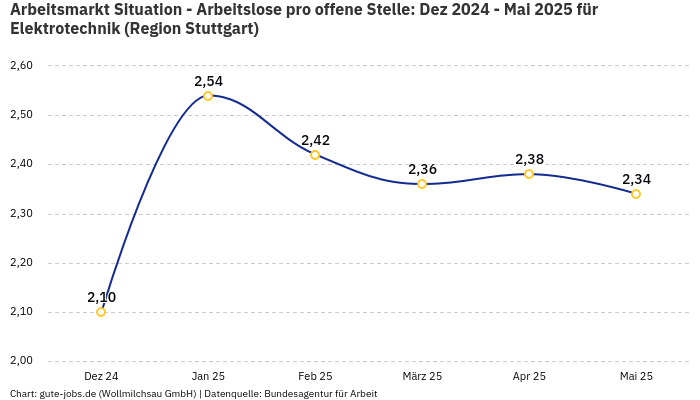 Arbeitsmarkt Situation - Arbeitslose pro offene Stelle: Juni 2025 - Nov 2025 | Für Elektrotechnik | Region Stuttgart