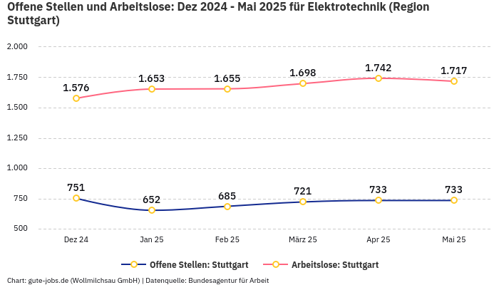 Offene Stellen und Arbeitslose: Juni 2025 - Nov 2025 | Für Elektrotechnik | Region Stuttgart