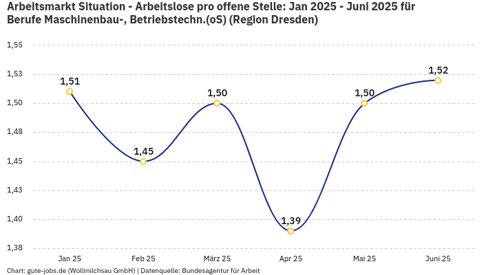 Für den Beruf Ingenieur Maschinenbau findest Du in unserer Jobbörse momentan 1 offene Stellen. Aktuell liegt in der Arbeitsmarktregion Dresden die Vakanzzeit bei 179 Tagen. Dies entspricht dem Zeitraum zwischen der Publikation des Jobangebots bei der Jobbörse der Agentur für Arbeit und seiner Entfernung aus eben dieser.