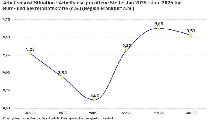 Arbeitsmarkt Situation - Arbeitslose pro offene Stelle: Juni 2025 - Nov 2025 | Für Büro- und Sekretariatskräfte (o.S.) | Region Frankfurt a.M.