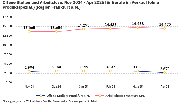 Offene Stellen und Arbeitslose: Juni 2025 - Nov 2025 | Für Berufe im Verkauf (ohne Produktspezial.) | Region Frankfurt a.M.