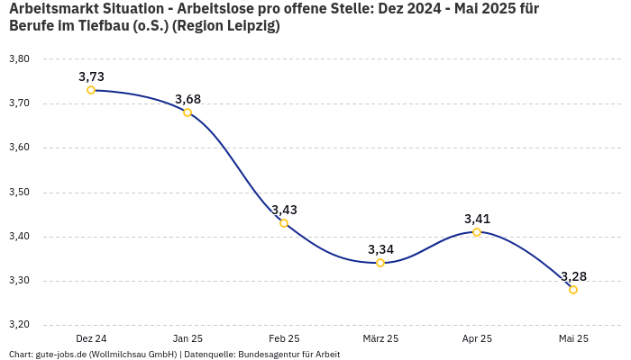 Du willst wissen, wie aussichtsreich Deine Suche als Meister Tiefbau in Wittenberg (Lutherstadt) ist? Laut Statistik „konkurrieren“ in der Berufsgruppe “Berufe im Tiefbau (o.S.)” im Monat 342 registrierte Arbeitslose bei der Bundesagentur für Arbeit um 90 offene Jobs. So kommen in der Arbeitsmarktregion Leipzig im Monat November 3,80 Arbeitslose auf eine offene Stelle.
