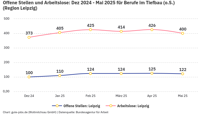 Für die Stelle als Meister Tiefbau sind in unserer Jobbörse derzeit 5 offene Stellen verzeichnet. In der Arbeitsmarktregion Leipzig, in der Du suchst, dauert es im Durchschnitt 226 Tage, ehe eine Stelle in diesem Bereich besetzt werden kann.