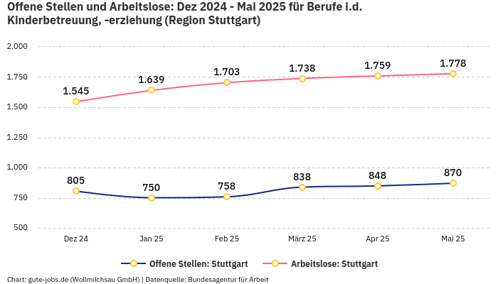 Momentan haben wir in unserer Stellenbörse 1 offene Jobs zu bieten. Um eine Stelle in dem von Dir gewünschten Beruf zu besetzen, vergehen in der Arbeitsmarktregion Stuttgart im Schnitt119 Tage.