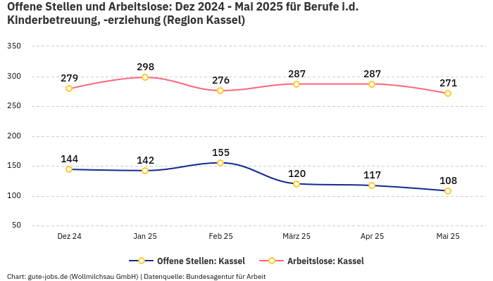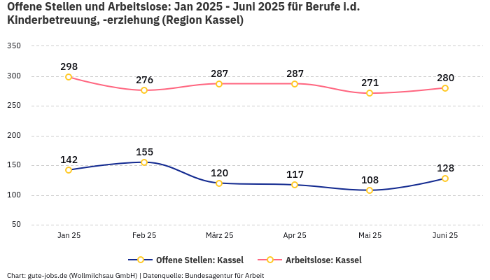 Momentan haben wir in unserer Stellenbörse 4 offene Jobs zu bieten. Um eine Stelle in dem von Dir gewünschten Beruf zu besetzen, vergehen in der Arbeitsmarktregion Kassel im Schnitt110 Tage.