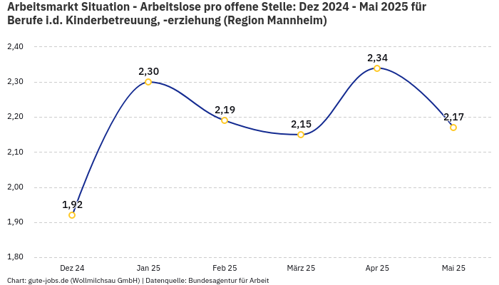 Arbeitsmarkt Situation - Arbeitslose pro offene Stelle: Juni 2025 - Nov 2025 | Für Berufe i.d. Kinderbetreuung, -erziehung | Region Mannheim