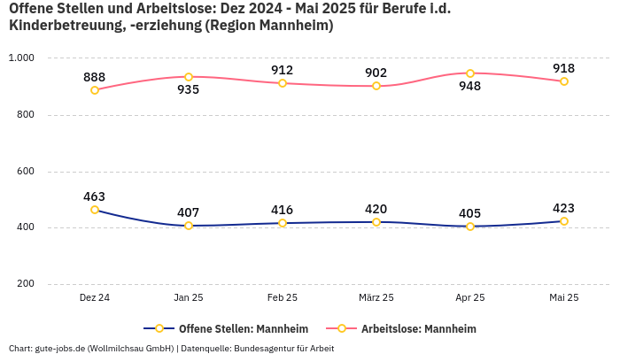 Offene Stellen und Arbeitslose: Juni 2025 - Nov 2025 | Für Berufe i.d. Kinderbetreuung, -erziehung | Region Mannheim