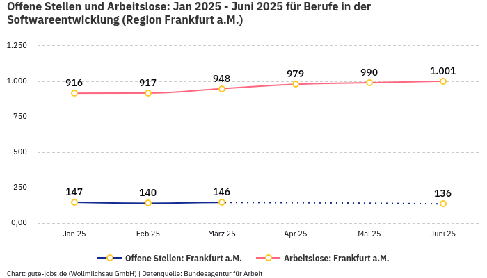 Offene Stellen und Arbeitslose: Juni 2025 - Nov 2025 | Für Berufe in der Softwareentwicklung | Region Frankfurt a.M.
